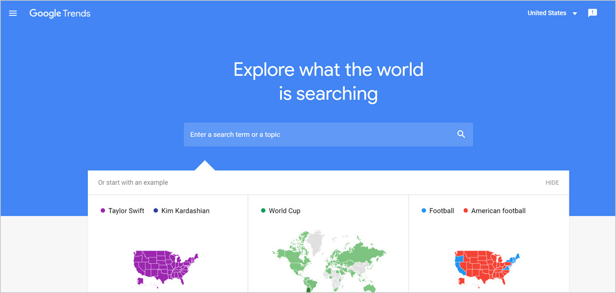 First, you can enter a Keyword and get information about present trends overall the country. Second, you could compare two or more Keywords and know about their popularity currently. Focusing more on Keyword trending down would help you provide opportunity to target those relevant topics that your competitors are not targeting.